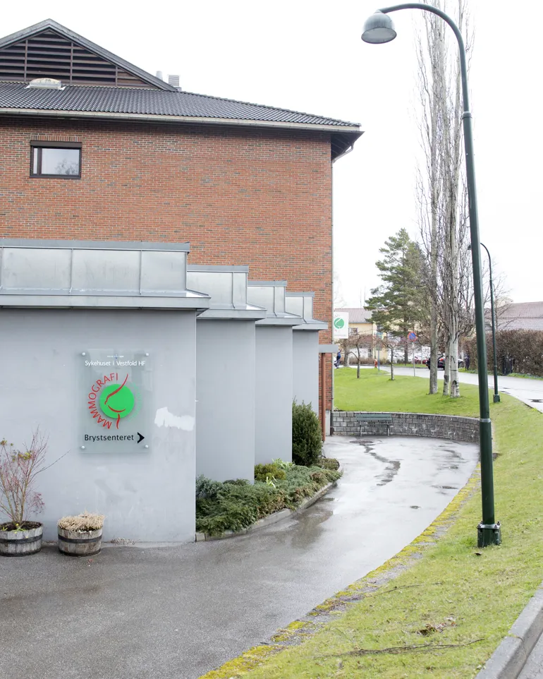 Brystsenteret ligger på baksiden av sykehusområdet i Tønsberg. Inngang fra Håkon Vs gate. Det er skiltet med Brystsenter fra Halfdan Wilhelmsens Alle.