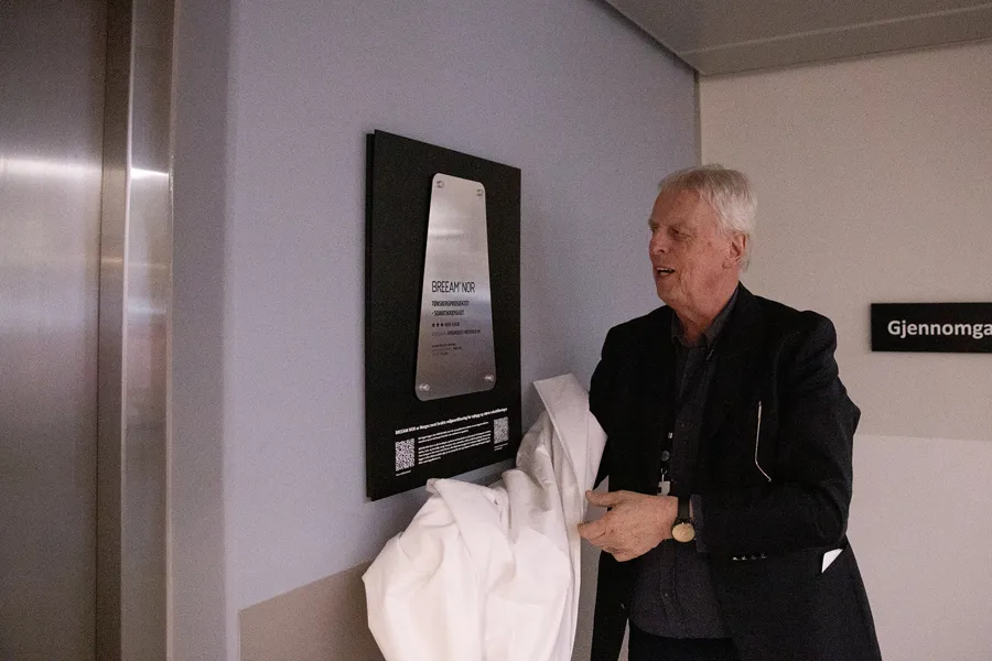 Siste trinn av utbyggingen ved Sykehuset i Vestfold, Tønsbergprosjektet, er det første sykehusprosjektet i Norge med BREEAM NOR-sertifisering. Torsdag ble det synlige beviset på at prosjektet har oppnådd BREEAM-NOR nivå Very Good avduket.