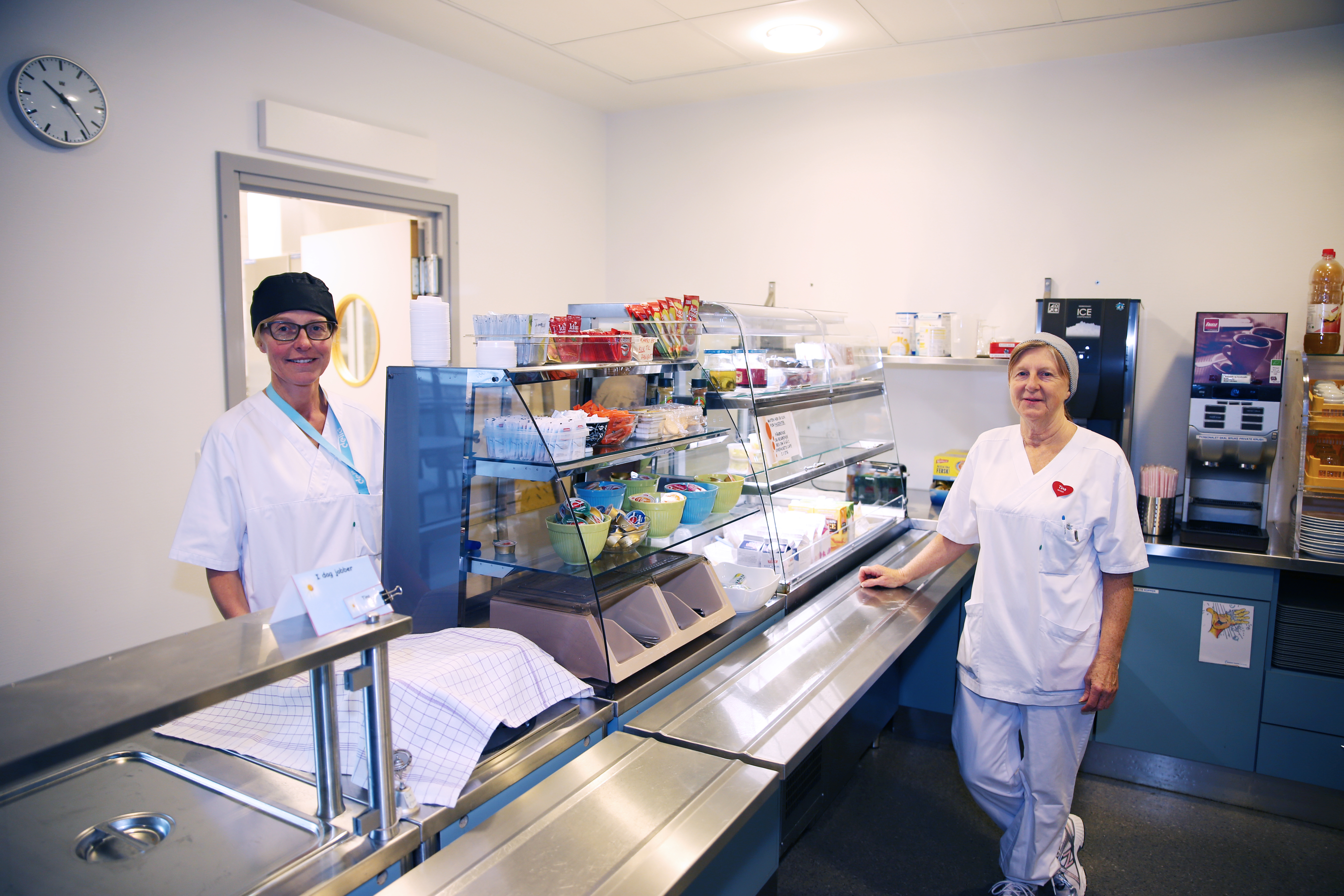 HØYDEPUNKT: – For mange pasienter er maten dagens store høydepunkt, sier seksjonsleder Sigrid Aske (til venstre) ved matvertseksjonen. Her fra postkjøkken sammen med Anne Kristine Lindfors.